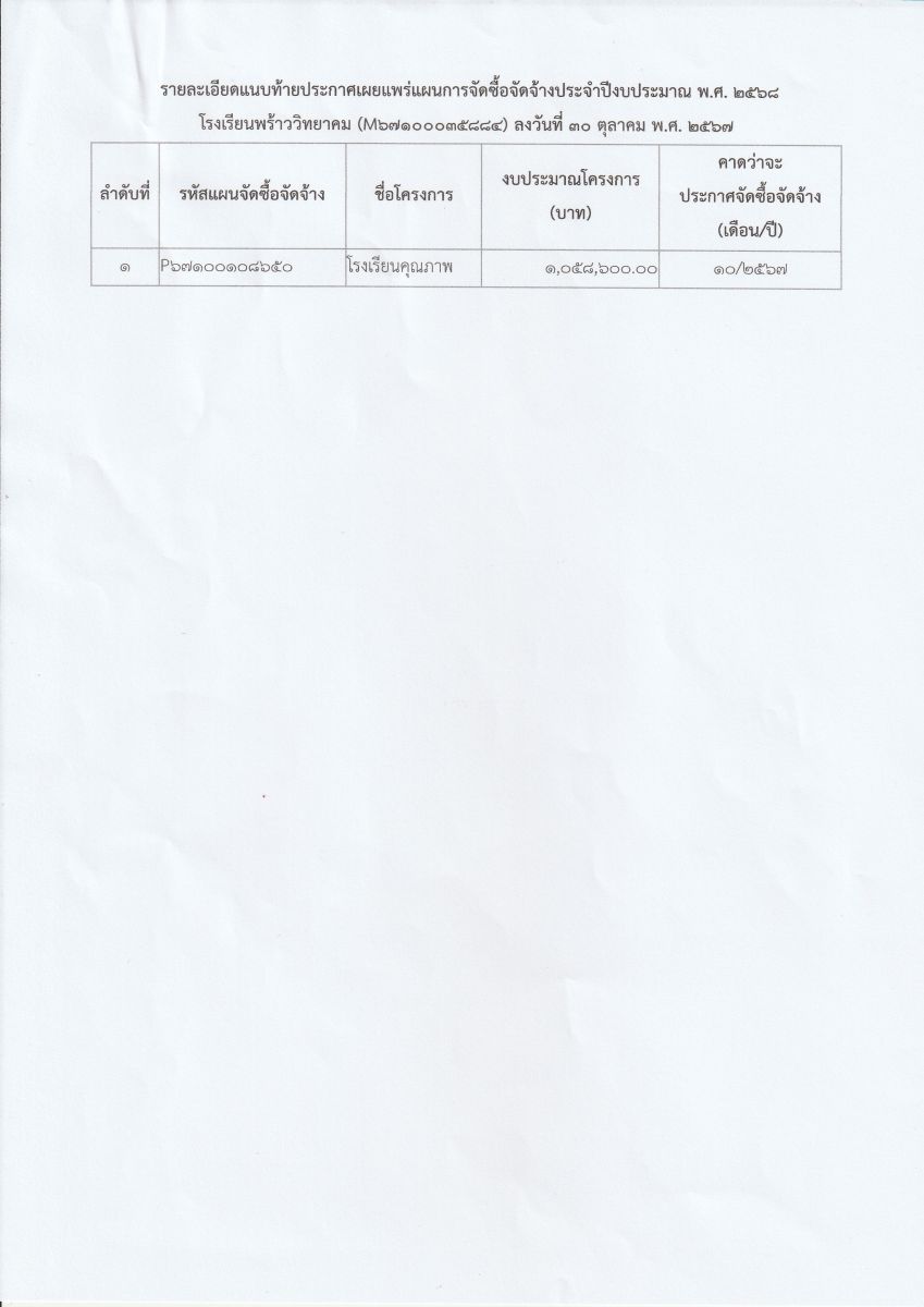 ประกาศเผยแพร่จัดซื้อจัดจ้าง เลขที่ P67100108650