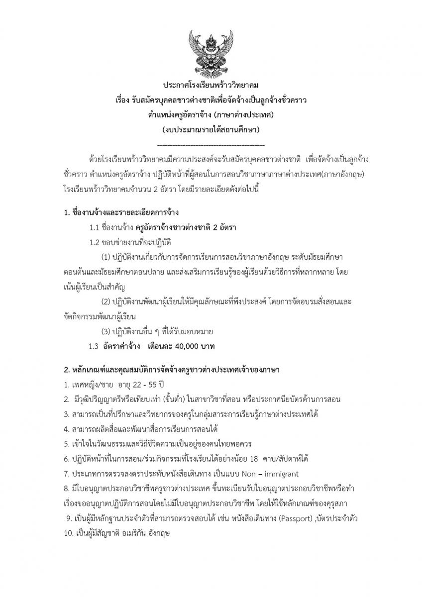 รับสมัครบุคลากรชาวต่างชาติเพื่อจัดจ้างเป็นลูกจ้างชั่วคราว