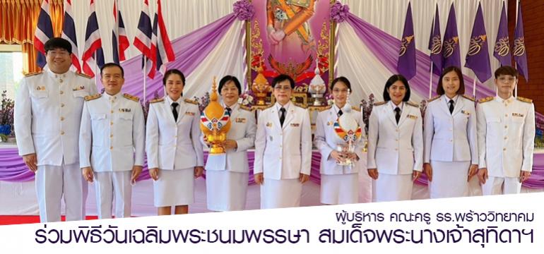 ผู้บริหาร คณะครู รร.พร้าววิทยาคม ร่วมพิธีวันเฉลิมพระชนมพรรษา สมเด็จพระนางเจ้าสุทิดา พัชรสุธาพิมลลักษณ พระบรมราชินี...