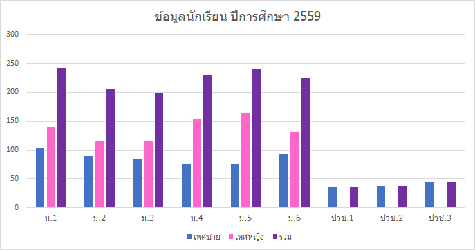 จำนวนนักเรียนปีการศึกษา 2559 รวม 1,458 คน