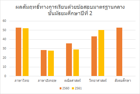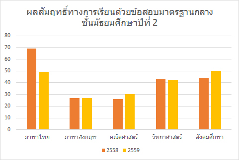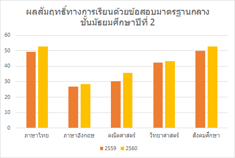 ผลการประเมินผลสัมฤทธิ์ทางการเรียนด้วยข้อสอบมาตรฐานกลาง